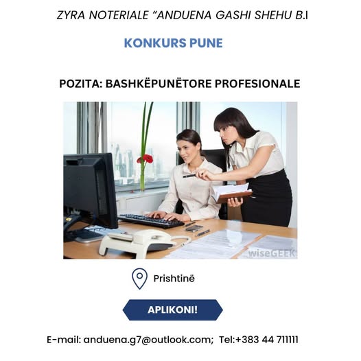 Dokumentet e nevojshme (CV, diploma, dëshmia e përvojës së punës, etj.) duhet të dërgohen brenda 10 ditëve nga dita e publikimit të konkursit, në adresën elektronike: anduena.g7@outlook.com