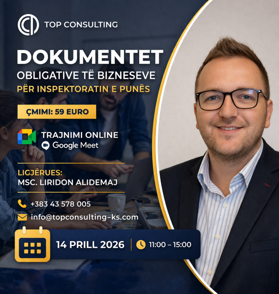 Trajnim Online- Dokumentet obligative të bizneseve për inspektoratin e punës KOSOVE 03/26/2026 Application ends: 04/13/2026 Apply Now Apply for this job Email * Gjinia Te dy gjinitë Femër Mashkull Lokacioni Ferizaj Fushë Kosovë Gjakovë Gjilan Kamenicë Lipjan London Los Angeles Malishevë Miami Mitrovicë New York Paris Pejë Prishtinë Prizeren Viti Vushtrri You accept our Terms and Conditions and Privacy Policy Job Description Share this post Facebook LinkedIn