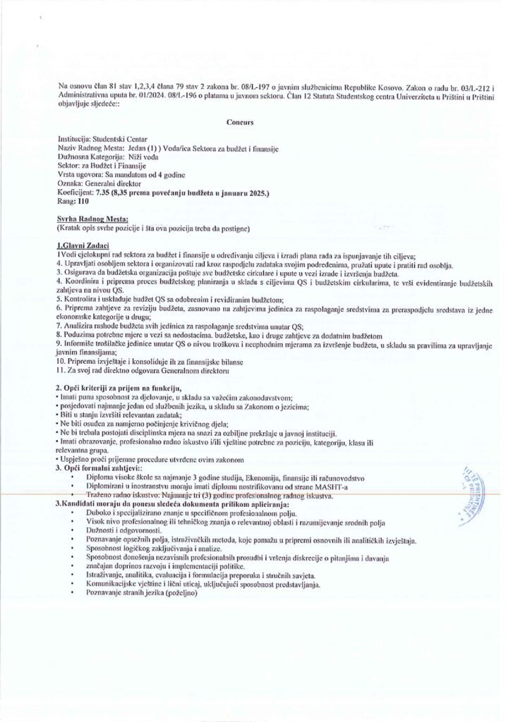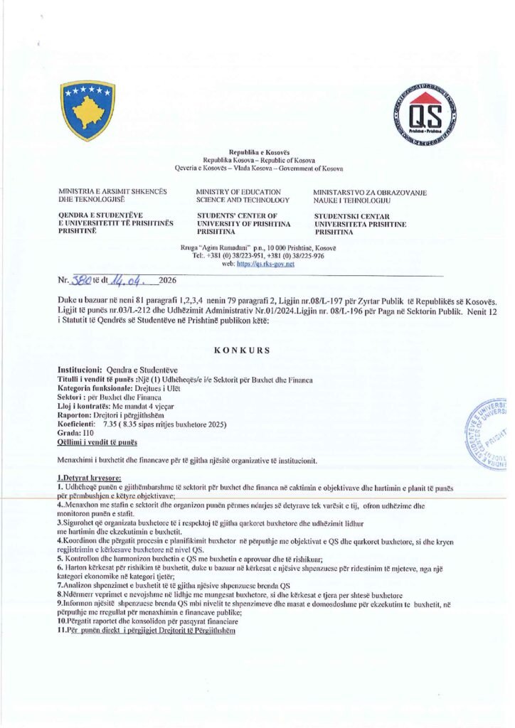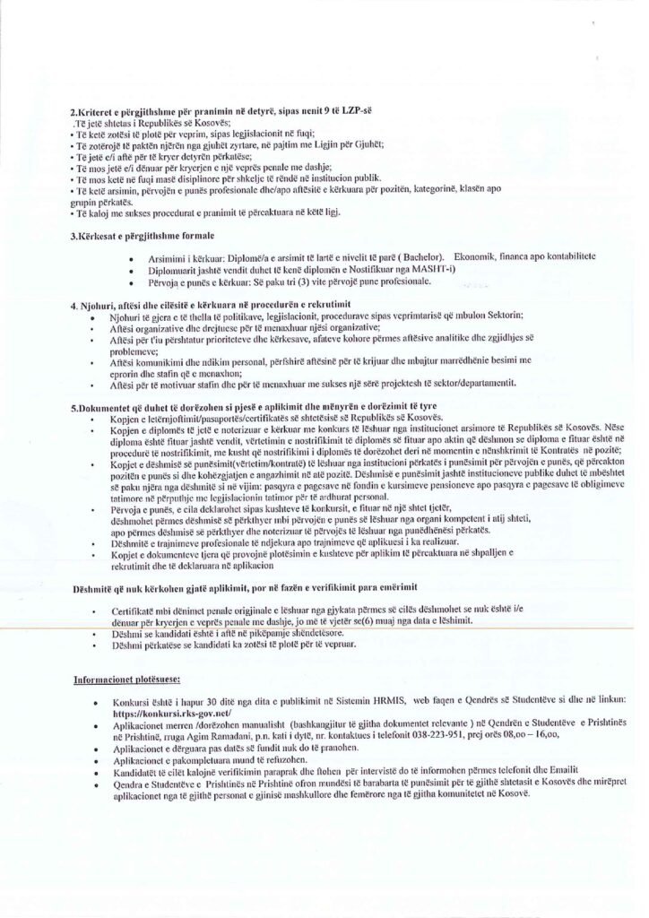 Udheheqes/e i/e sektorit per buxhet dhe financa