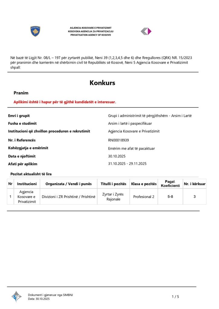 APLIKO: https://konkursi.rks-gov.net/jobs?servant=1