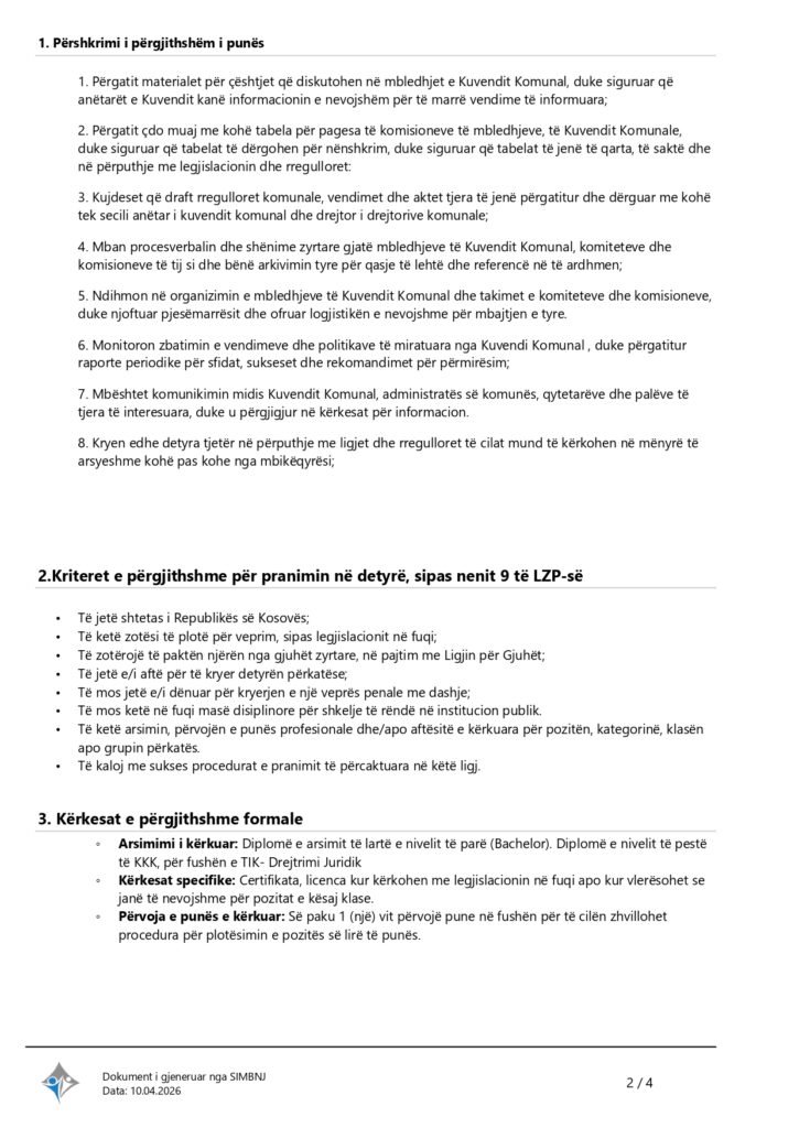 Zyrtar për çështjet e kuvendit të komunës