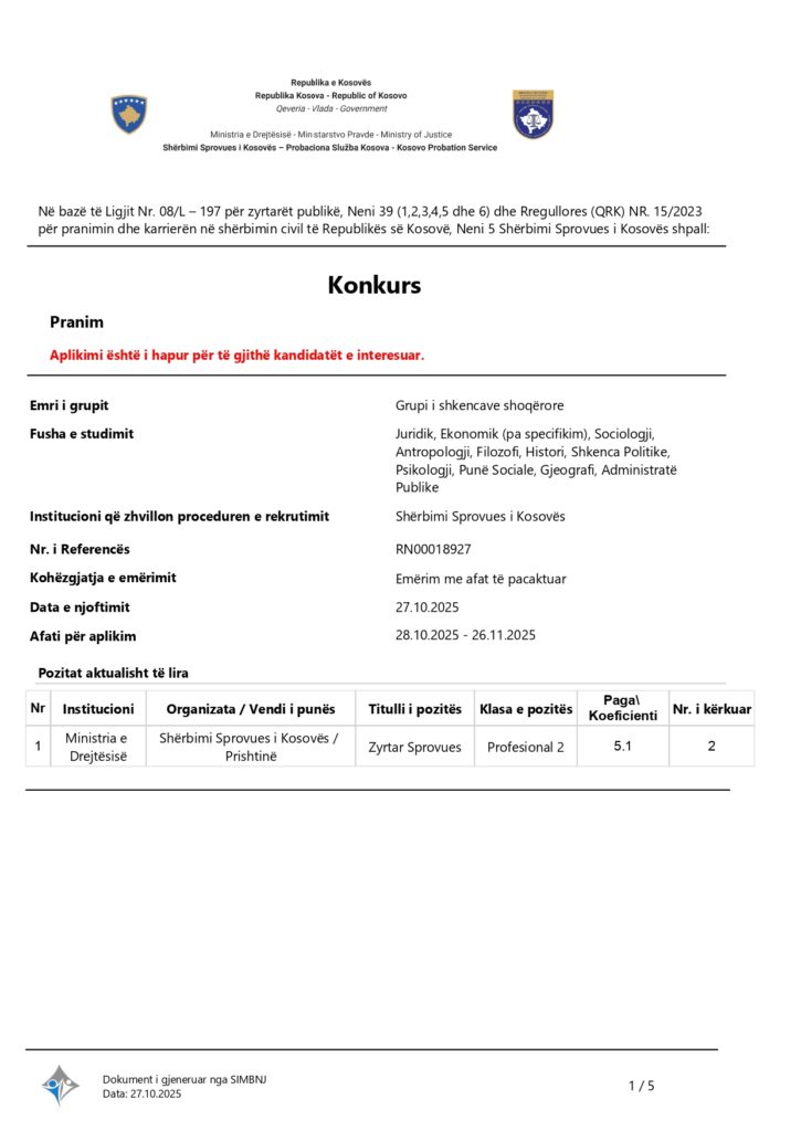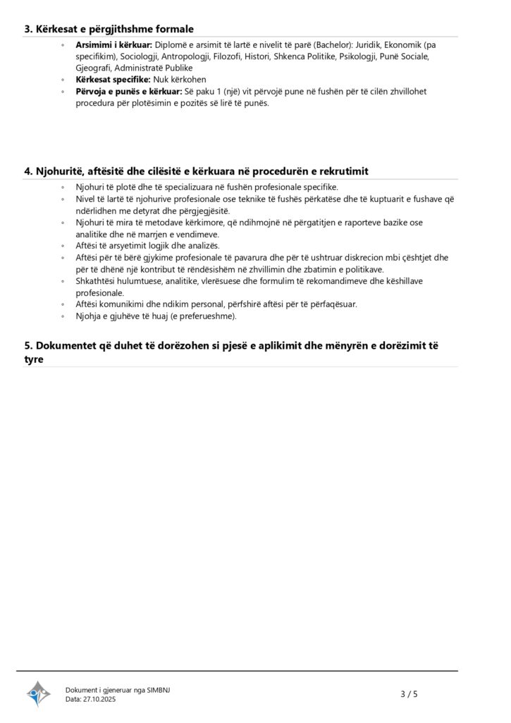 Zyrtar Sprovues Zyrtar Sprovues Prishtinë 11/06/2025 Orar të plotë Application ends: 11/26/2025 Apply Now Job Description Apliko: https://konkursi.rks-gov.net/advertisement/details?refNumber=RN00018927 Burimi: https://konkursi.rks-gov.net/advertisement/details?refNumber=RN00018927 Share this post Facebook LinkedIn Related Jobs Zyrtar Sprovues Zyrtar Sprovues Prishtinë Orar të plotë